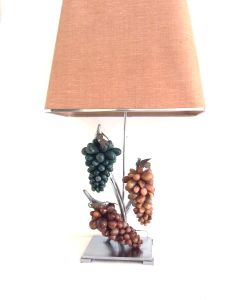 Steel lamp Work from the 1970s, Embellished with three branches from which are suspended three large bunches of grapes in hard stone (Agathe and Carnelian)