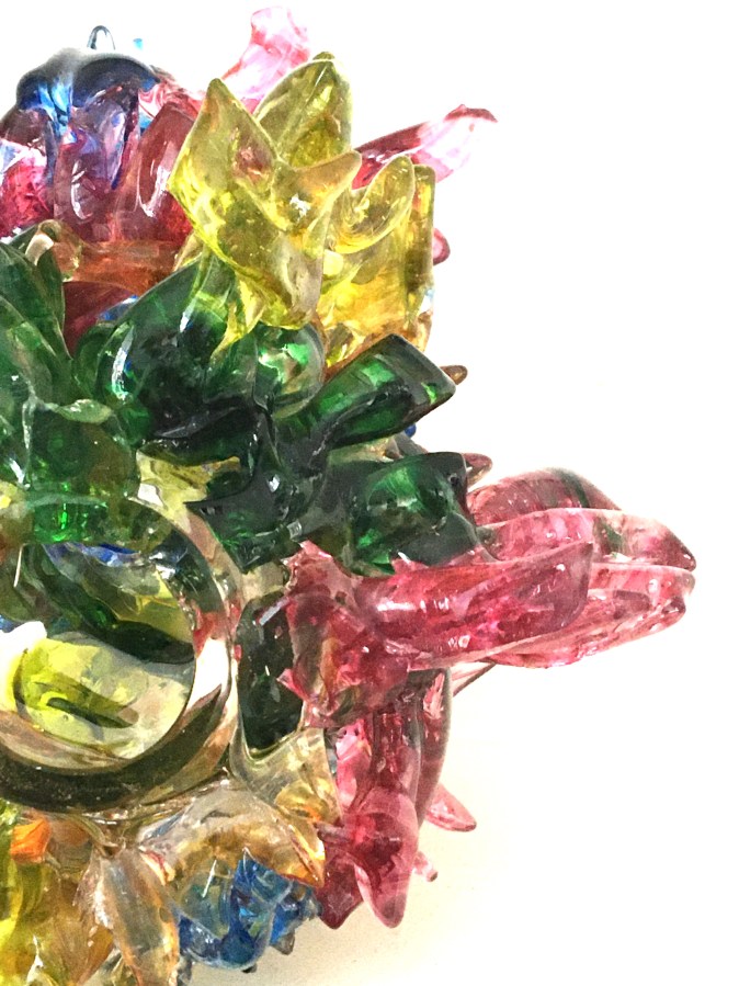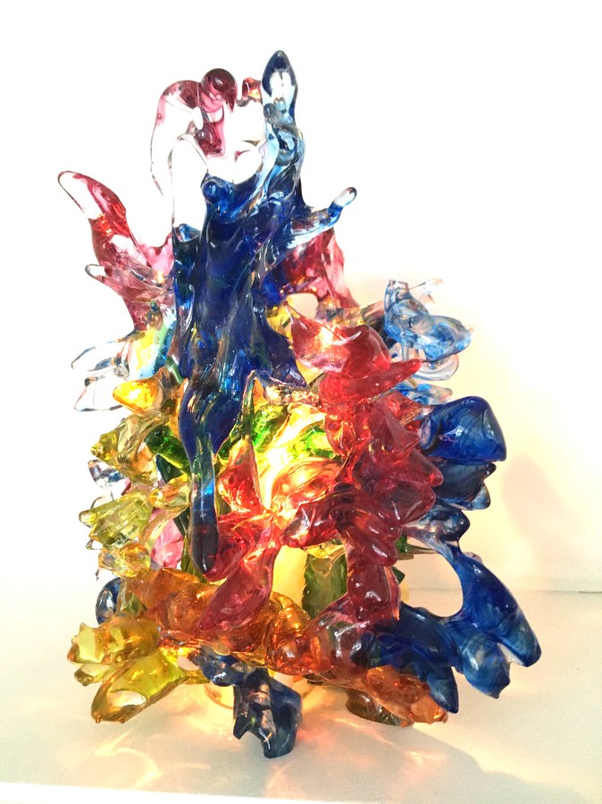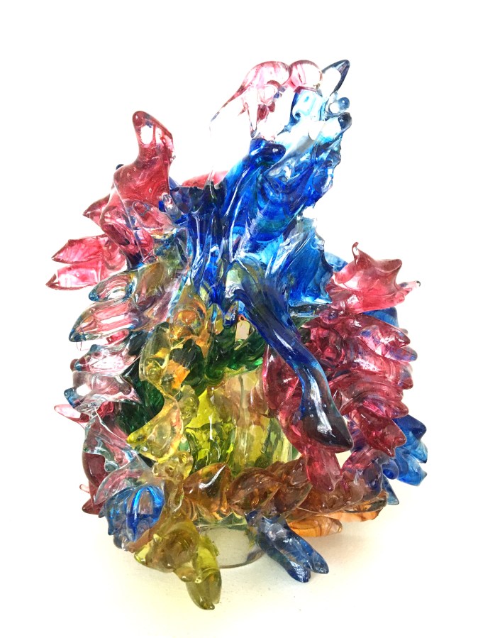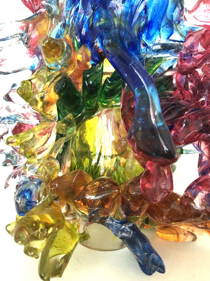 Sculpture abstraite en verre multiple couleurs de Murano, façonnée et exécutée à la main.