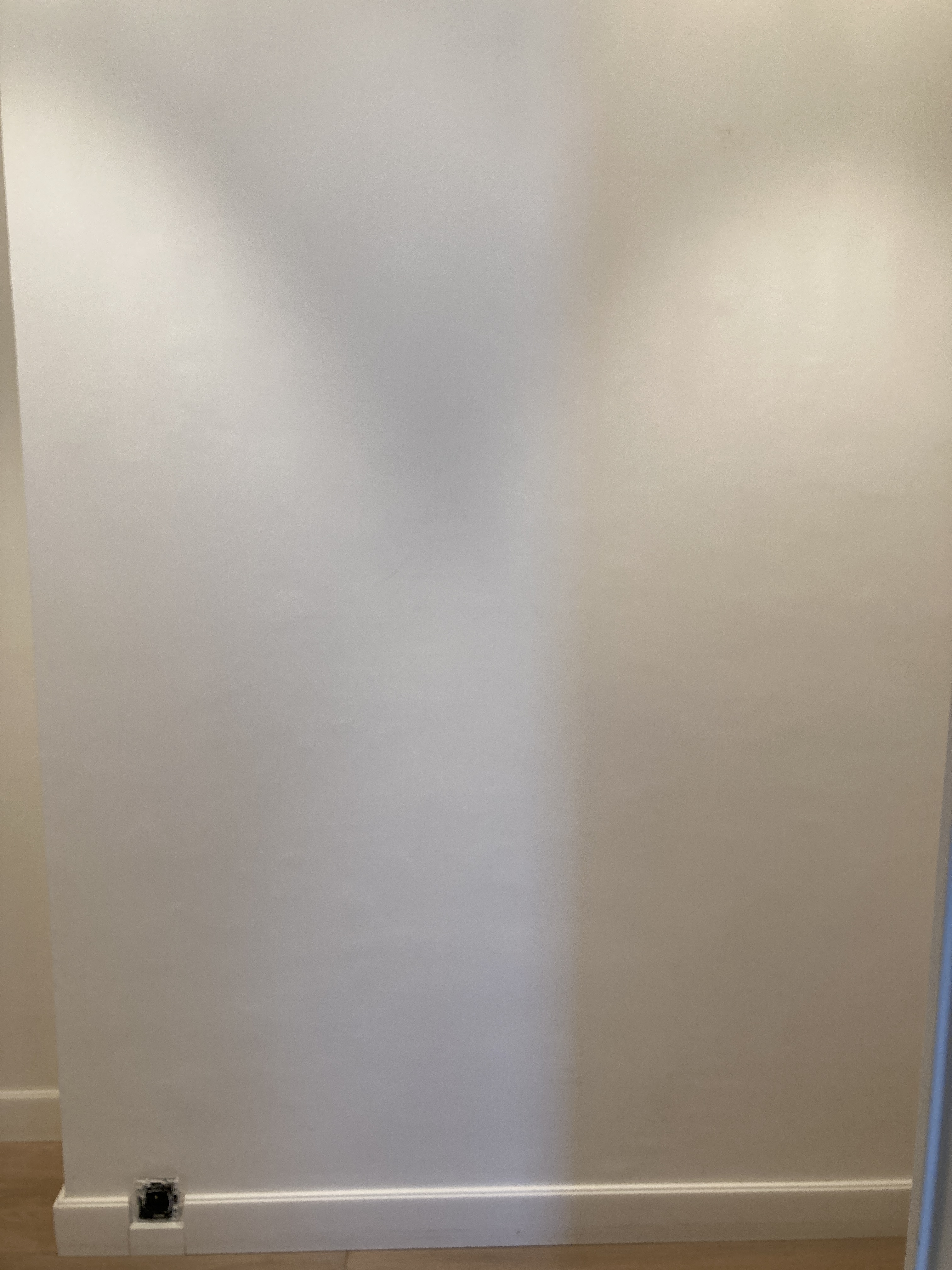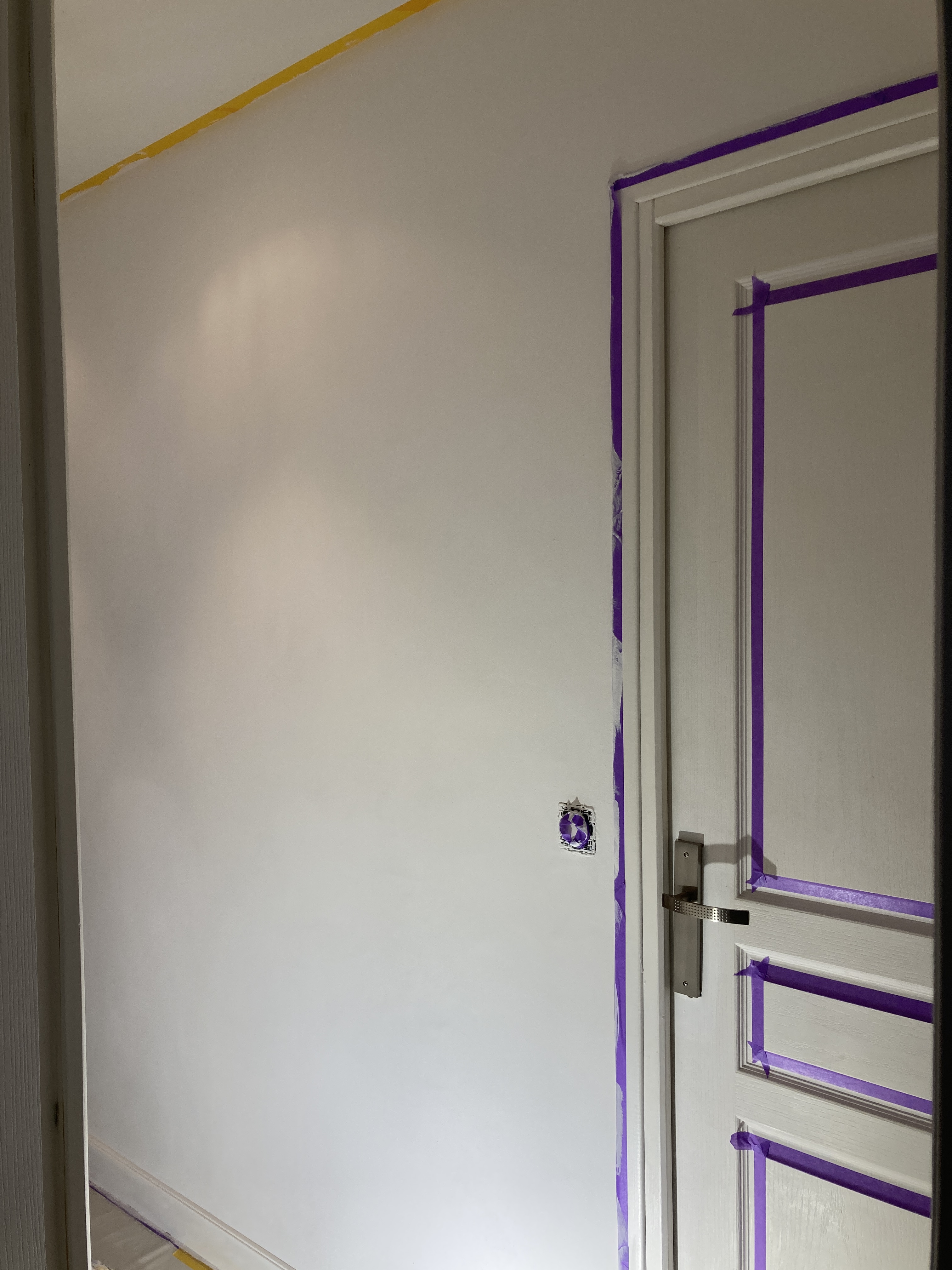 Dans ce nouveau projet, notre client avait laissé ce petit couloir au parquet couleur nude, en total look blanc, en attendant une idée décorative inspirante, qui la fasse vibrer un peu.
