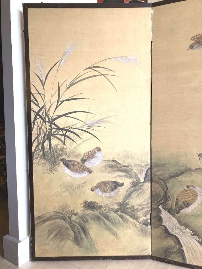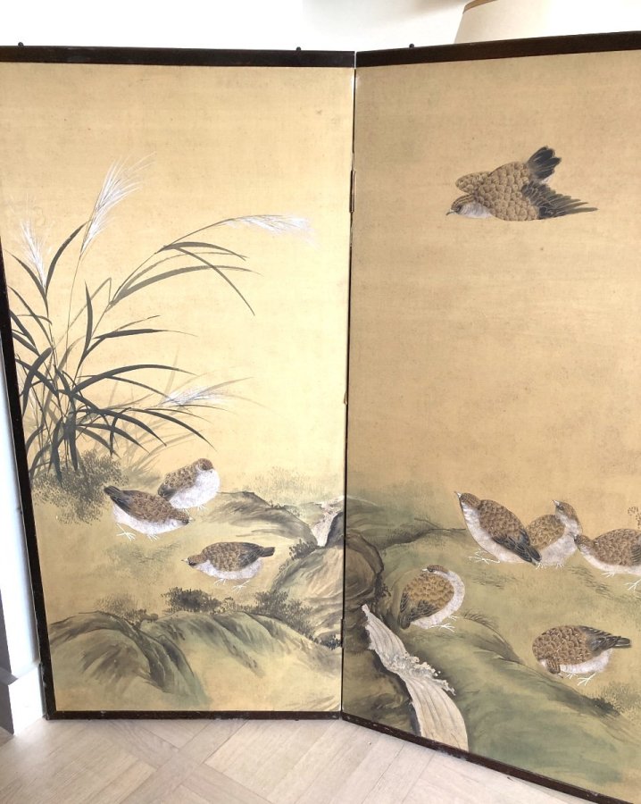 Notre paravent ici en vente sur https://www.proantic.com/1121502-paravent-a-deux-feuilles-en-soie-peinte-byobu-japon-debut-20eme.html#