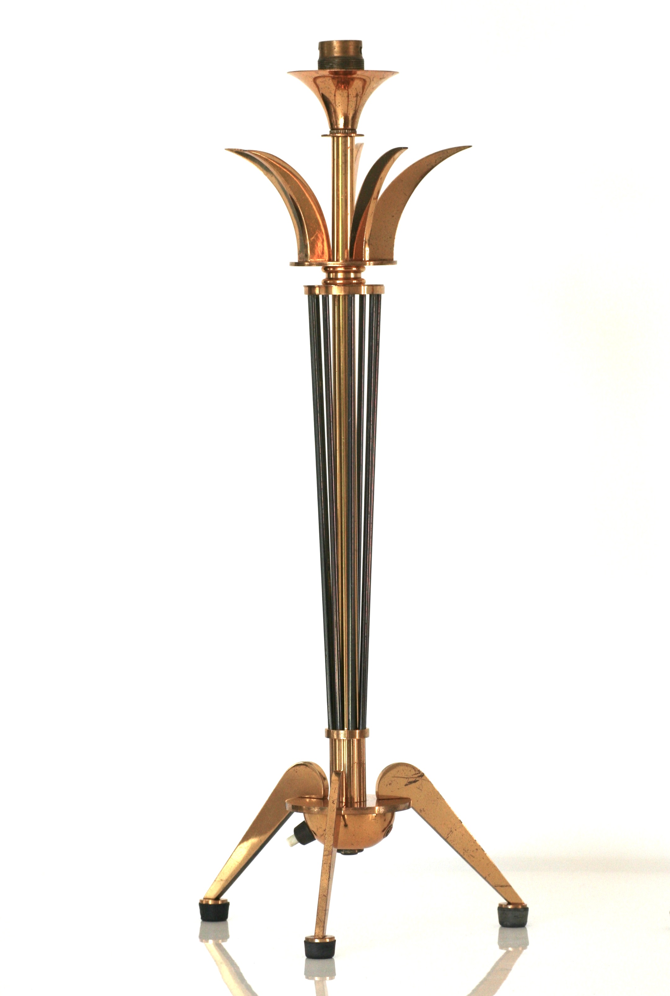 Italian creation lamp in the 1960/1970 years, gilt bronze and gunmetal based on three pads feet. original gilding (some wear to the gilding)