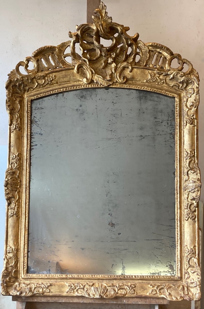 Miroir en bois sculpté et doré d’époque Régence 18ème