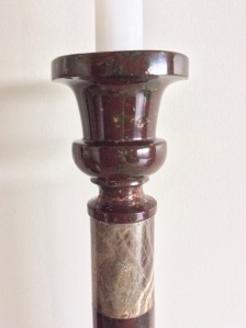 Large pair of bi color marble candlesticks (campan red and sarrancolin)